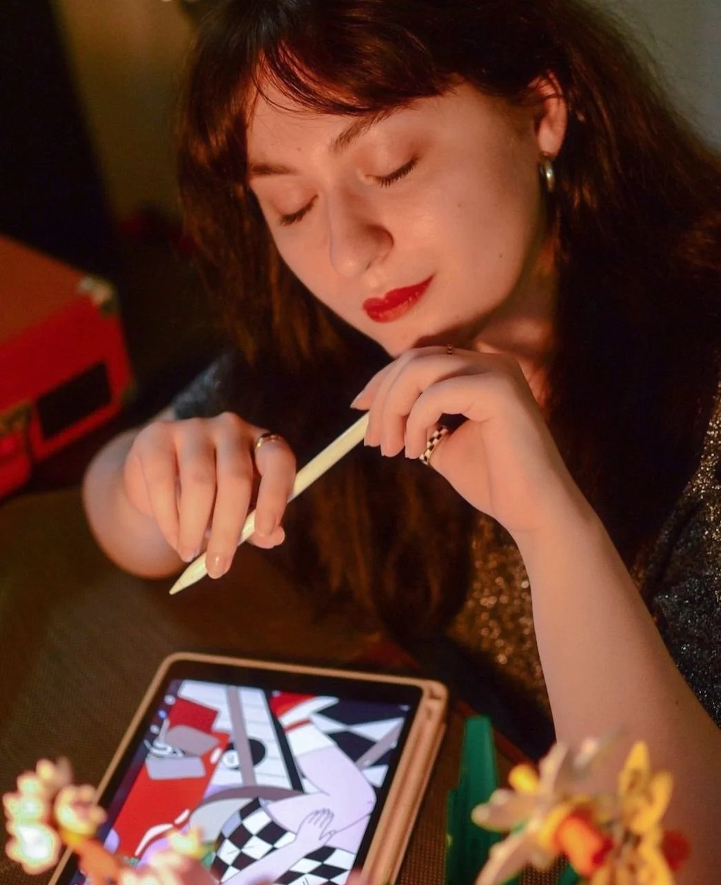 Alongside my illustrations, I’m also passionate about writing and creating mixtapes that capture the exact mood and atmosphere of each artwork, like soundtracks to the worlds I draw. I capture the entire mood on my blog ‘Girlfringe Diaries’, where I yap about my creative process, daily life & the entire universe of my art.